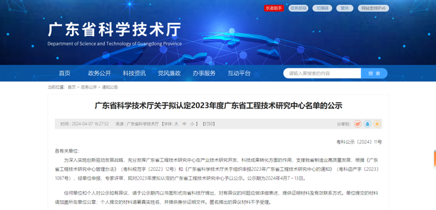 Guangdong Provincial Engineering and Technology Research Centre is an important scientific research platform to build a technological innovation system which is enterprise-oriented, market-oriented and deeply integrated with industry, academia, research and application. Each engineering centre should increase scientific research investment and condition construction, strengthen technical research and cooperation, accelerate the transformation of results and talent training, and play the role of scientific and technological support and leading demonstration in the high-quality development of the industry.